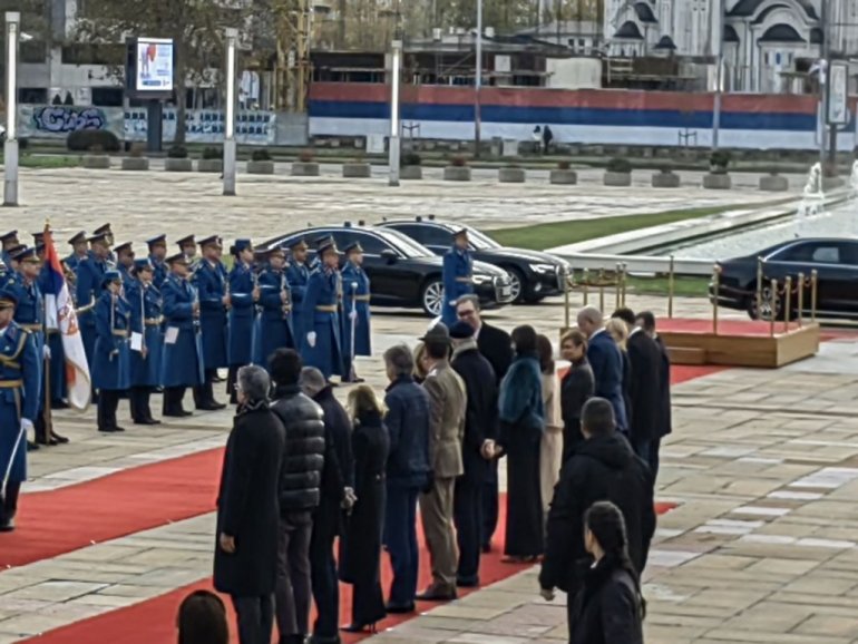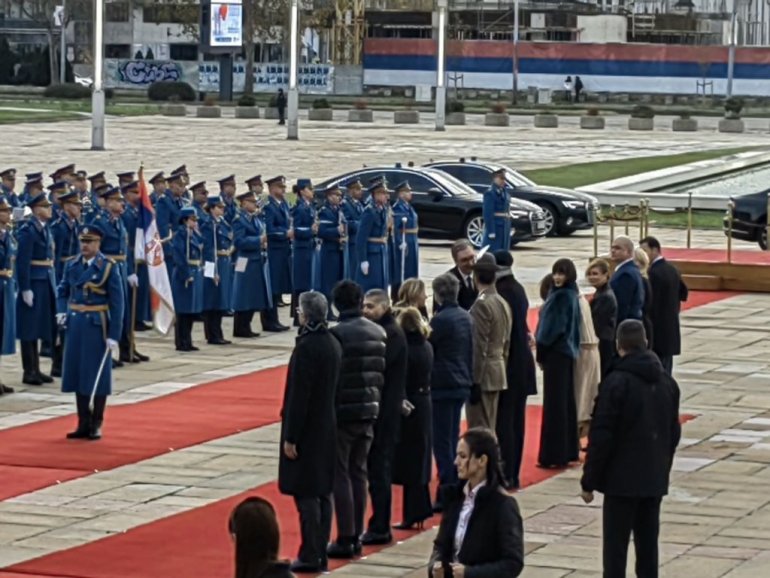 Kako je najavljeno iz Službe za saradnju s medijima predsednika Republike, predviđen je svečani doček predsednice italijanske Vlade ispred Palate ''Srbija''.