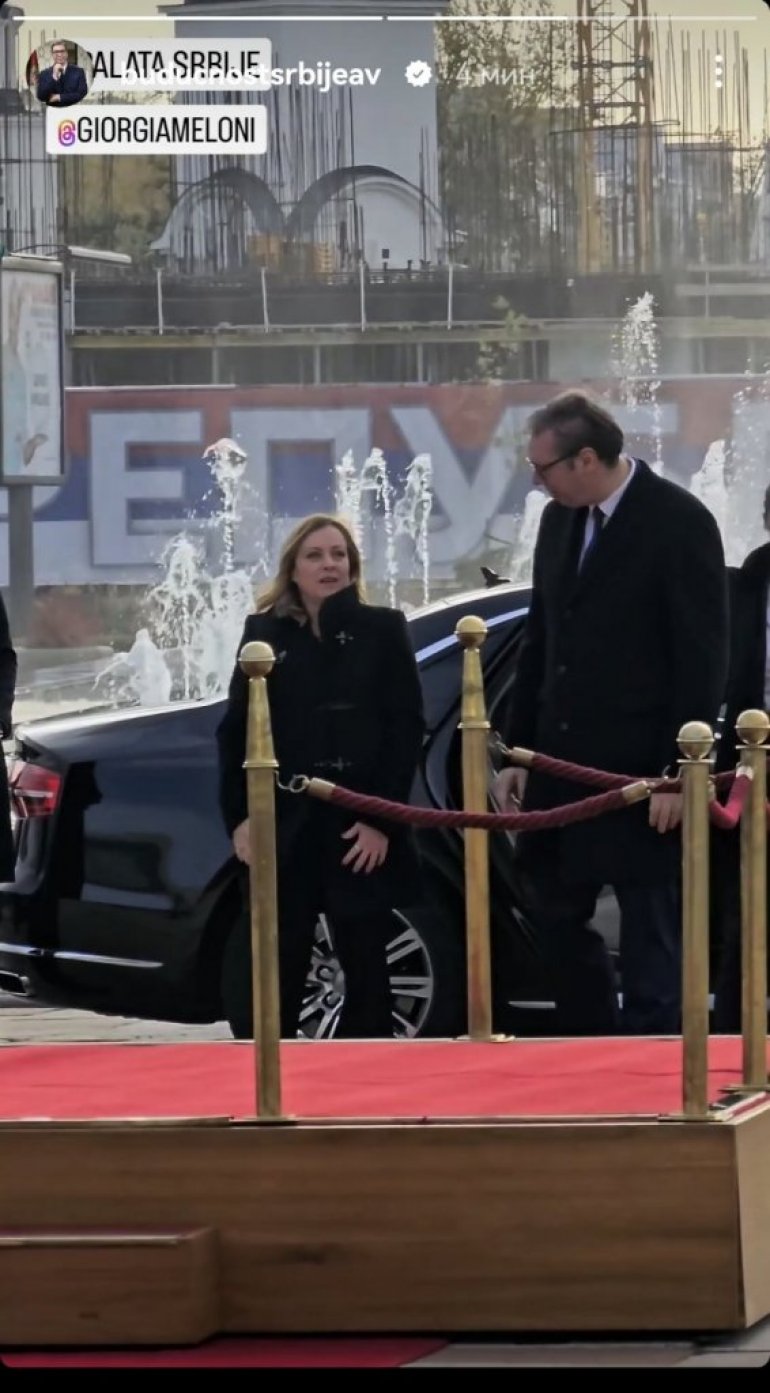Kao što je prethodno najavljeno, nakon što je Vučić dočekao Đorđu Meloni usledio je tet-a-tet sastanak, posle čega sledi obraćanje javnosti.