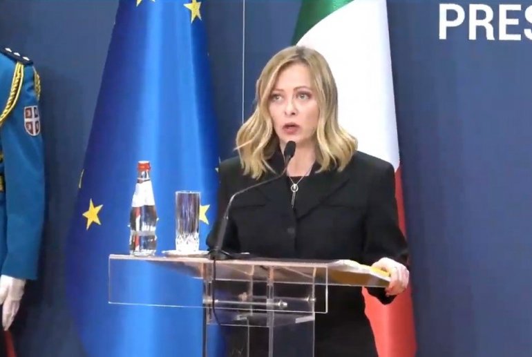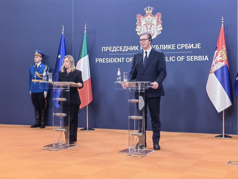 - Nastavićemo da budemo među prvim zemljama koje podržavaju proces proširenja, to jeste ujedinjenja Evrope. Ono što treba da urade evropske insitucije to je proces kako bi bilo garantovano da će doći do ujedinjenja Evrope. Za nas je bitno da Zapadni Balkan uđe u evropsku porodicu. Predsednik zna da može da računa na našu podršku, kako bismo ubrzali proces približavanja EU i sve ono što EK traži. Mi ćemo biti za vas na tom putu, bitno je da postoji više bezbednosti i razvoja. Znam da će Srbija nastaviti da ima konstruktivan pristup dijalogu sa Kosovom. Italija podržava taj proces da dođe do realizacije svih obaveza koje su strane na sebe preuzele. Ima i drugih tema u kojima možemo da sarađujemo i nađemo mnoga rešenja - kazala je Meloni.