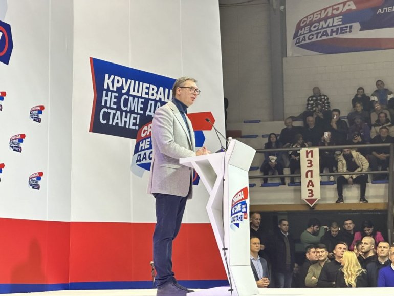 VUČIĆ U KRUŠEVCU NA SKUPU: Cilj je preko 50 posto - Možete u parama da imate koliko hoćete, dušu našeg naroda ne možete da kupite