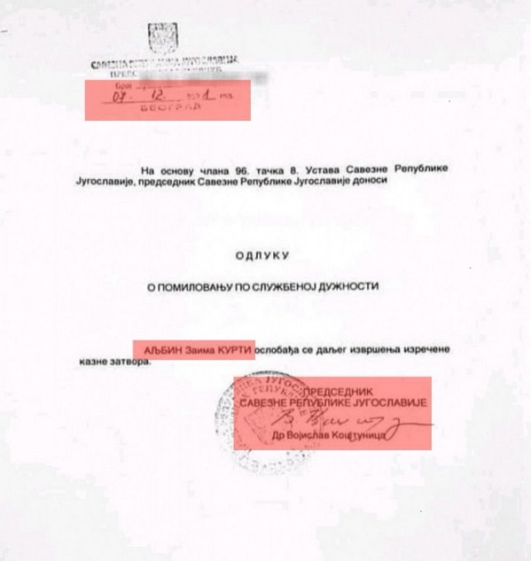Kurti je pušten na slobodu nakon dve i po godine provedene u zatvoru u Nišu, gde je izdržavao kaznu od 15 godina zbog terorizma.