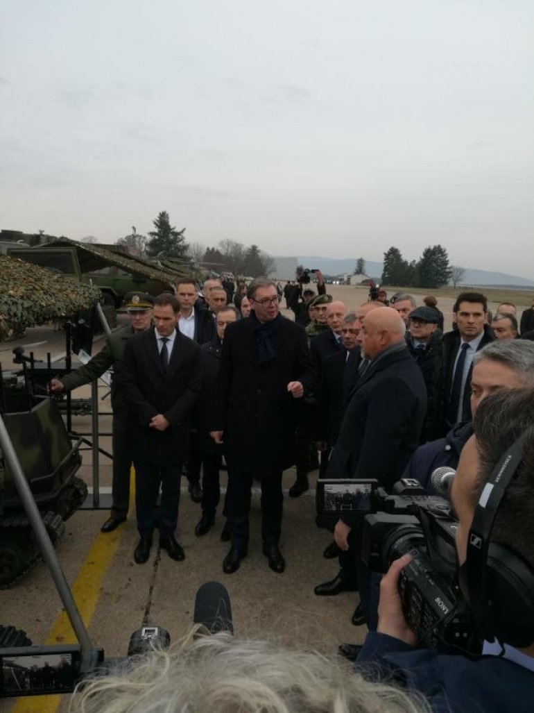 Prisustvuju i ministar odbrane Miloš Vučević, načelnik Generalštaba Vojske Srbije Milan Mojsilović, kao i ministar finansija Siniša Mali.