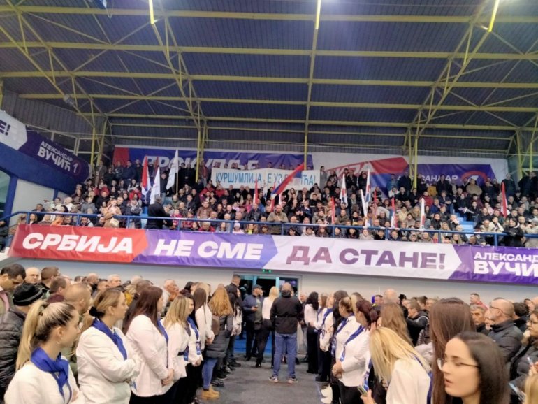- Kada glasamo ne biramo samo vladu, mi biramo budućnost, pravac. Biramo ljude koji će pretvoriti naše ideje u dela. Protiv nas svi su se ujedinili. Svi najavili da će posle izbora napraviti nekakvu koalciiju, tehničku vladu kako govore. Ne znam šta tzo znači, ali znam da bi to bio tehnički nokaut, da vas udaraju sa leve i desne strane, kao u boksu. Nema izmicanja, morate i vi onda u borbu. Istinom protiv njihovih laži i prevara, da ih razobličimo. Ako pobede slučajno 17. decmebra, 18. će priznati nezavisnost Kosova, a 19. će uvesti sankcije Rusiji. Da li je to ono što želimo?