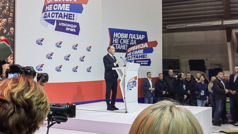 - Kad smo podizali atletski stadion bilo je "šta će stadion ovde" a sad su glavni zahtevi kad će bazeni, fudbalski stadion u Pazaru, što znači da smo neke druge stvari uspeli kad smo do ovoga došli da uradimo. Ići će nam Kragujevac, Niš, Beograd, samo nađite zemlju da rešimo problem. Vi imate ovde vernu publiku, Novi Pazar ima Adema Ljajića koji je vratio veru u fudbal ovde u Pazaru. Ono što je za mene mnogo važnije, bio sam na nekom sajmu u Beogradu, došao sam do štanda Pazara, to je bila moja ideja, video sam da su napravili za mene najlepši prospekt koji sam mogao da vidim o našoj zemlji. Džamija, crkva, i to je sve naše, naše nasleđe čime moramo da se pohvalimo na svakom mestu i sve je vaše. I da vam kažem, Hamad Međedović on je naša nada. Znam ja da je on nada Pazara, ali ne ljutite se, on je i nada Beograda i cele naše zemlje i sve ćemo da uradimo da budemo uz njega. I ja sam znao da cenite po delima, ne po onome je li vam neko simpatičan ili nije. Ubrzaćemo mi radove na svim pravcima i poljima. A lako je da budete zlonamerni, uvek ćete da je pronađete, to je najlakše. Hajde kaži nešto lepo pristojno, ili pomozi, ali nemoj da odmažeš. Što, da niste vi bolnice i stadione uradili? Ništa od toga niste napravili. Nama je za Pazar potreban veliki investitor, ali kapitalno intenzivni sa nešto višim platama, ali nam je to zamajac da nam Pazar bude industrijski centar, da bi mogao da se razvija brže i bolje. U svakom trenutku i na svakom mestu sam mislio i na Bošnjake, ne samo na Srbe. Volim i Armina i Asmina i nadam se da nam donesu medalju kao i Milan i Aleksandar i bilo ko drugi. Sve je to naša zemlja. Ja mislim da više Bošnjaka mora da bude u našim institucijama. Ja vidim kod vas, biću otvoren, vidim kod vas to jer znam kad ovde se pojavim sutra će da vas napadaju što ste bili i slušali Vučića. Vodiću politiku koja je dobra za Srbe i za Bošnjake. I vas Srbe i Bošnjake molim da razumete da je cela ova zemlja je jednako vaša zemlja koliko moja, Rasimova, naša. Cela ova zemlja je vaša zemlja i morate da imate jednaka prava, a oni koji vam kažu "u čemu smo to slični ili isti", razmislite, pitajte svoje predstavnike pa mi kažite u koji kraj Srbije je uloženo kao u Novi Pazar u poslednjih deset godina. Ja mislim da razumete koliko je to proporcionalno. Doći će vam oni koji ne znaju šta bi sa državom, ali ono što znam da bi je temeljno opljačkali i razorili. Vas molim za odgovornost, izbori nisu igra, to nije pitanje lepe ili manje lepe reči, već odgovornosti za vašu i budućnost vaše dece. Zato vas molim da ih i ovde u Pazaru pobedimo ubedljivije nego ikad. Hvala na veličanstvenom dočeku, da ih pobedimo, dagradimo i radimo zajedno i ubedljivije nego ikada! Za Pazar! Za Srbiju! Srbija i Pazar ne smeju da stanu! - kazao je on.