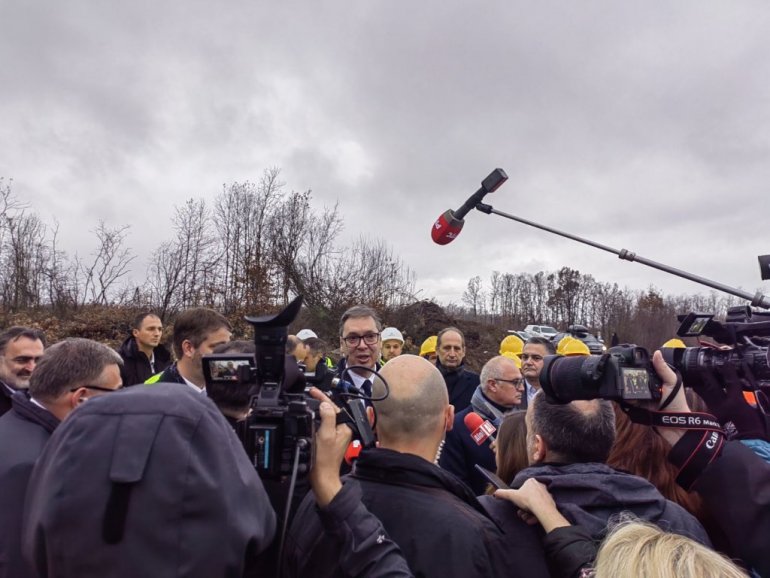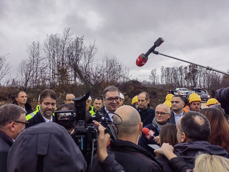 Predsednik Vučić je odmah po dolasku na gradilište pitao za koliko će radovi biti gotovi.
