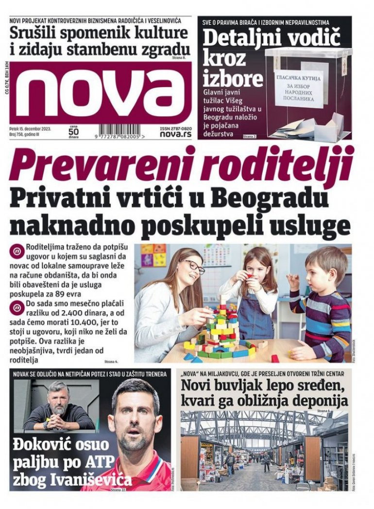 Primer kršenja izborne tišine može se videti i na naslovnoj strani "Nove".