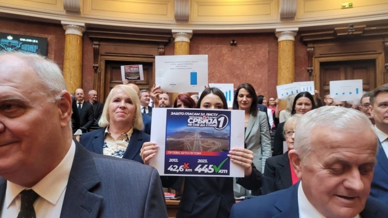 Tako su se svi građani Srbije mogli podsetiti da su u vreme ljudi koji danas u skupštini prave haos, dakle u vreme bivšeg režima, bila izgrađena samo 43 kilometra puteva i auto-puteva u Srbiji, dok je Srbija predvođena Aleksandrom Vučićem izgradila čak 445 kilometara puteva i auto-puteva. Poslanici liste koja može sama da formira većinu podsetili su bivši režim da je u njihovo vreme prosečna plata bila 331 evro, dok će tokom 2024. godine biti 958 evra, a 2027. godine biće čak 1.400 evra. Na razliku između 331 evra i 1400 evra Đilasovi poslanici nastavili su da odgovaraju vređanjem i ponižavanjem.