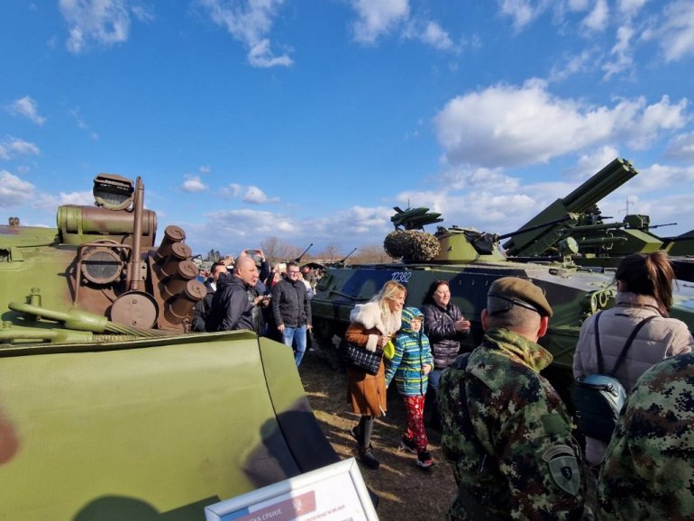 Mnogo ljudi se okupuli kako bi videli predsednika, ali i izloženo oružje i oruđe. Narod je hrlio prema Vučiću u želji da ga pozdravi i fotografiše sa njim.