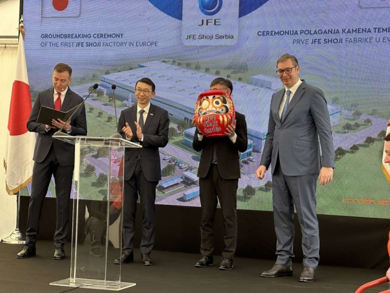 RADOVI na izgradnji nove fabrike kompanije JFE Shoji Serbia, prve u Evropi, vrednosti oko 50 miliona evra, u kojoj će posao dobiti između 100 i 150 ljudi, počeli su danas u industrijskoj zoni u Inđiji svečanim polaganjem kamena temeljca u prisustvu predsednika Srbije Aleksandra Vučića, ambasadora Japana u Beogradu Akire Imamure, predstavnika Vlade Srbije i kompanije.