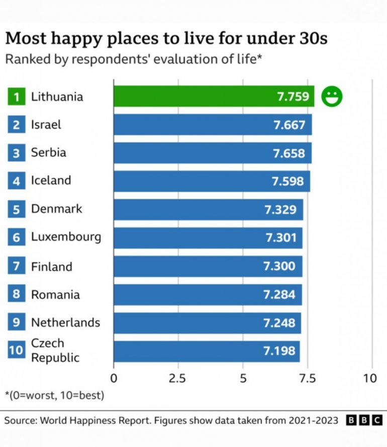 MLAĐI od trideset godina najsrećniji su u Litvaniji, Izraelu i na trećem mestu – u Srbiji, pokazao je Svetski izveštaj o sreći u kojem je po prvi put ove godine istraživanje razvrstano po uzrasnim grupama, kako je pisao Bi-Bi-Si.