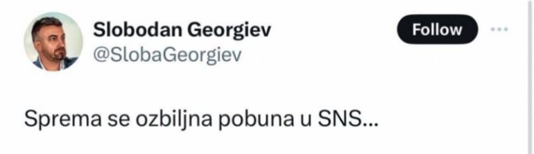 Slobodan Georgiev objavio je na mrežama da se "sprema ozbiljna pobuna u SNS."