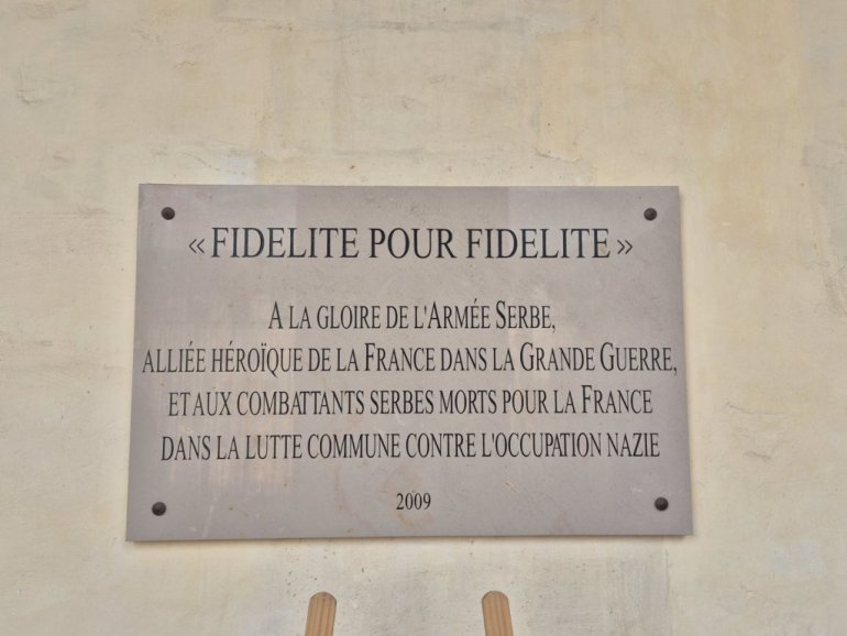 - U slavu srpske vojske, herojskog saveznika Francuske u Velikom ratu, i za srpske borce preminule za Francusku u zajedničkoj borbi protiv nacističke okupacije.