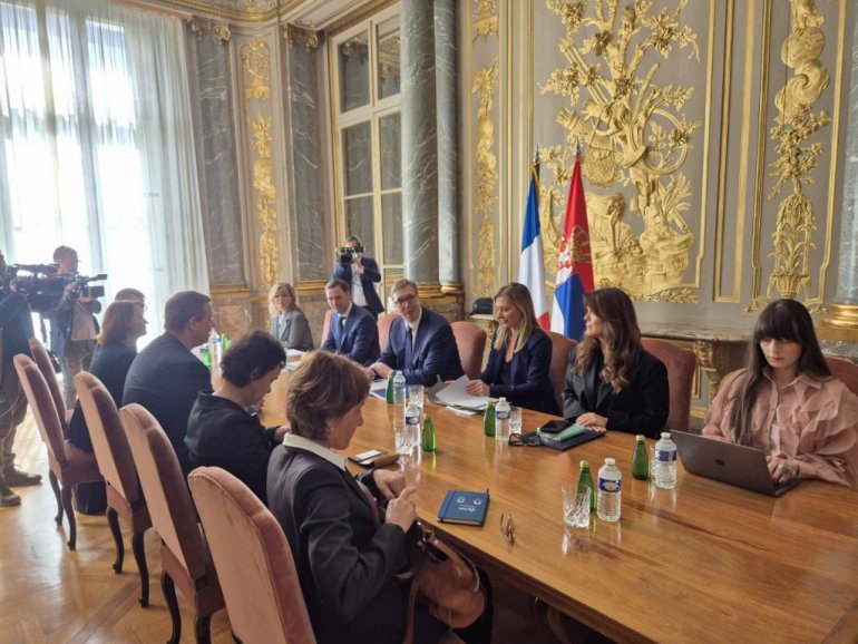 - Ponosan sam što sam večeras u Jelisejskoj palati imao priliku da sa predsednikom Emanuelom Makronom razgovaram o svim važnim pitanjima od geopolitičkih, do bilateralnih i onih strateški najbitnijih za Srbiju i naš narod. Ukazao sam mu na neuporedivo bolje ekonomske odnose naše dve zemlje, ali i izneo očekivanje da možemo još više i bolje kada su u pitanju trgovinska razmena, investicije i zajedničko poslovanje u mnogim oblastima u kojima Srbija ima dosta da nauči od Francuske. Izrazio sam očekivanje da će Francuska pružiti podršku Srbiji i u svim drugim sferama, prvenstveno kada su u pitanju naš evropski put i dijalog sa Prištinom. Još jednom sa zahvalio predsedniku Makronu na ličnom angažmanu kada je reč o očuvanju stabilnosti u našem regionu - napisao je Vučić na Instagramu.