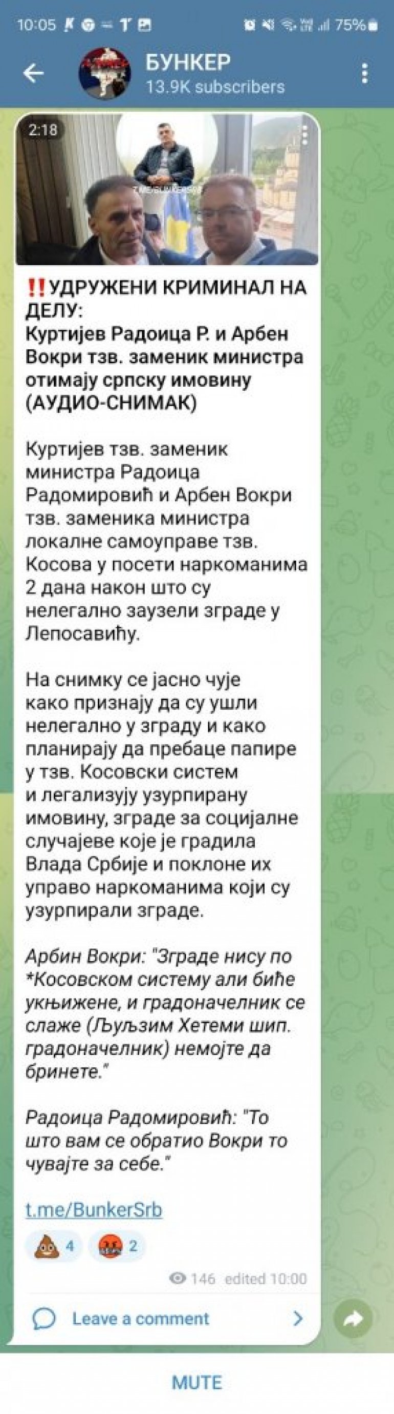 Kako se može čuti na audio-snimku, koji se pojavio na Telegram kanalu "BUNKER", pomenuti akteri priznaju da su ušli nelegalno u zgradu i kako planiraju da prebace papire u tzv. kosovski sistem i legalizuju uzurpiranu imovinu, zgrade za socijalne slučajeve koje je gradila Vlada Srbije i poklone ih upravo narkomanima koji su uzurpirali zgrade.