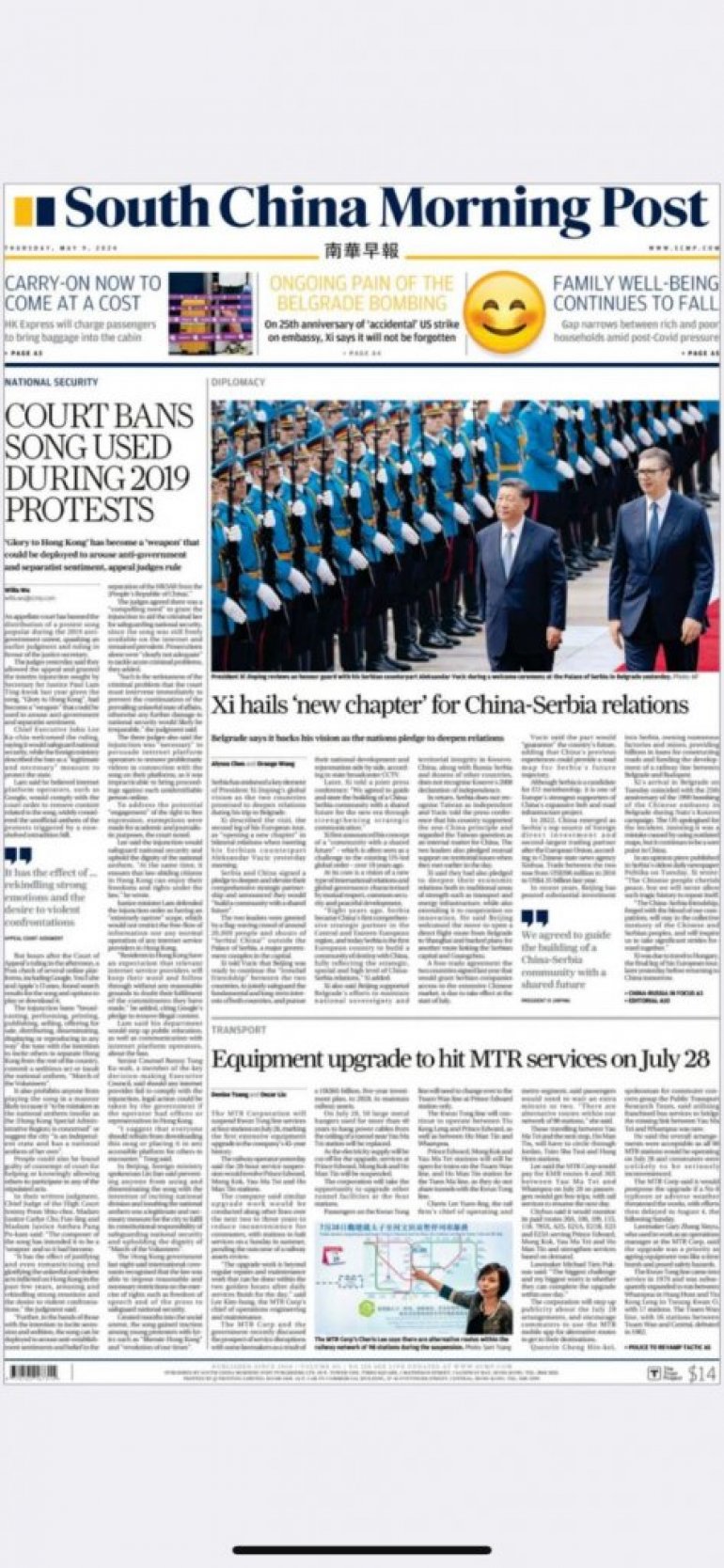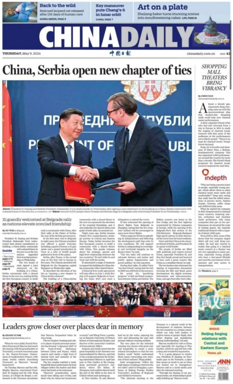 Saut Čajna morning post i Čajna dejli ističu na naslovnoj "novo poglavlje" u odnosima Srbije i Kine.