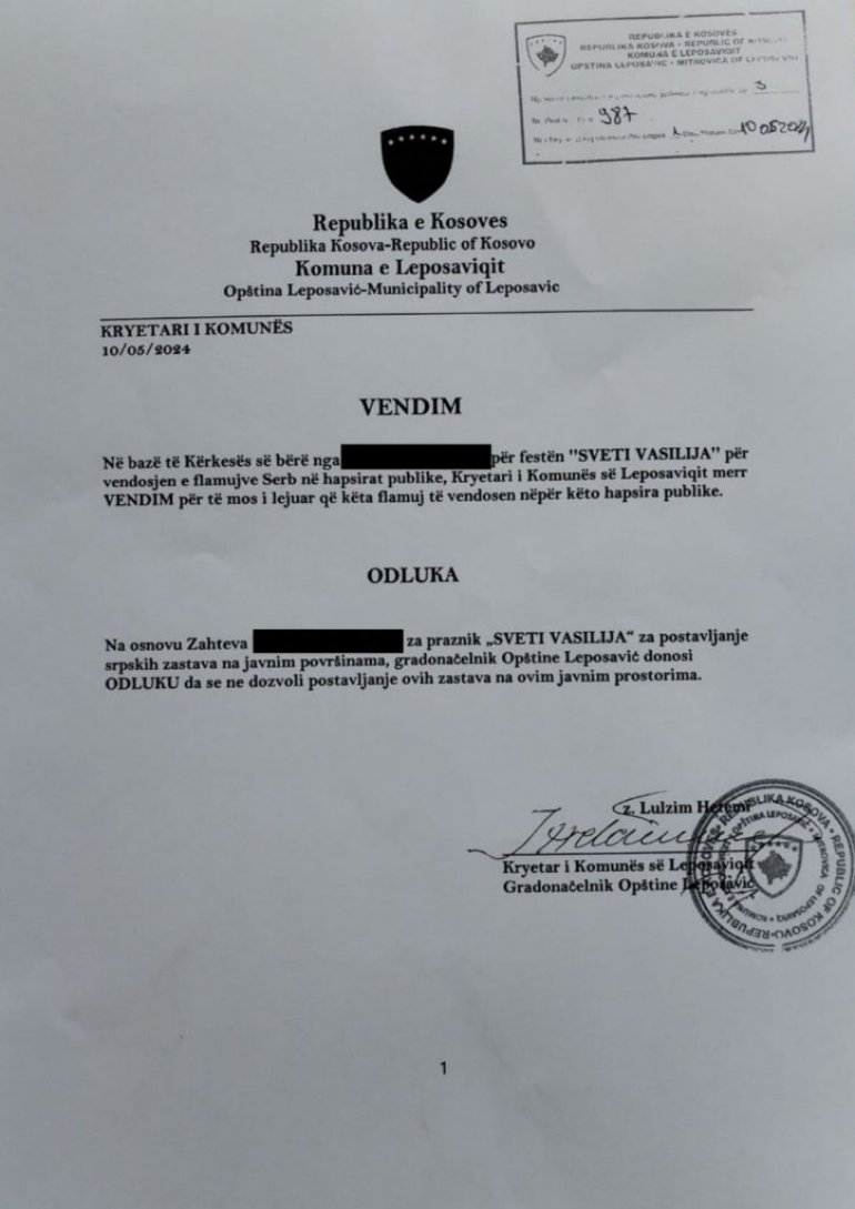 KURTIJEV lažni gradonačelnik i gaulajter u opštini Leposavić Ljuljzim Hetemi zabranio je da se na veliki pravoslavni praznik Svetog Vasilija Ostroškog u nedelju u Leposaviću postave srpske zastave!