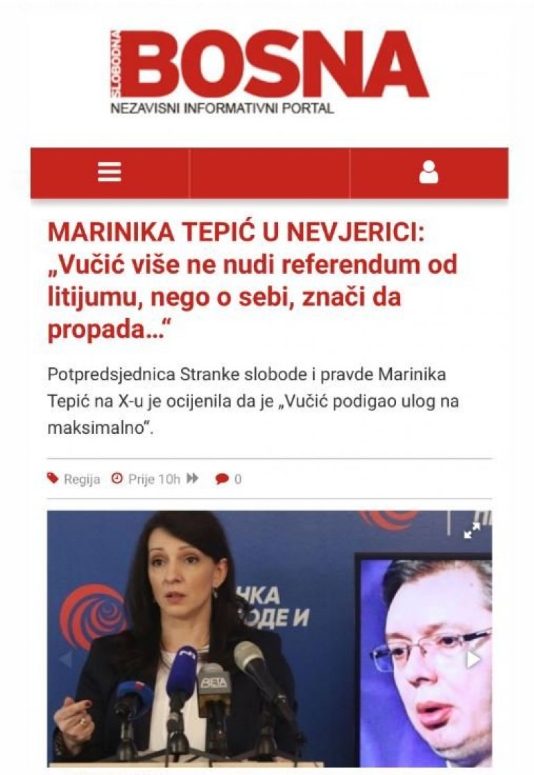 I dok su iskoristili još jednu priliku da vređaju predsednika Srbije, istovremeno u svojim tekstovima veličaju Mariniku Tepić.