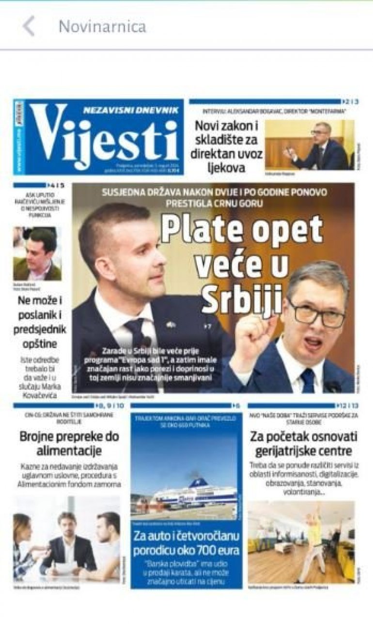 CRNOGORSKI portal ''Vijesti'' objavio je tekst na temu plata, u kome se navodi kako je u Srbiji veća prosečna zarada nego u Crnoj Gori!