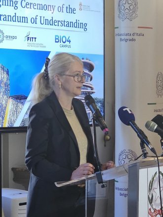 Stvaranje mostova između naše dve nacije, naše dve zemlje u polju nauke i inovacije je od presudnog značaja i čvrsto verujem da će ovaj forum podstaći dalju saradnju i budući rast. Želela bih da izrazim svoju najveću zahvalnost italijanskoj ambasadi i Nj.E. Luki za nepokolebljivu podršku i saradnju, kako i našim novim partnerima, AREXPO i Foundation For Innovation and Technology Transfer koji su prepoznali potencijal Srbije u inovacijama i uverena sam da će na kraju ova saradnja doneti značajne rezultate i otvoriti nova vrata za sledeću generaciju istraživača, inovatora i preduzetnika koju čine BIO4 kampus, ali i i Srbiju kako centar regionalne i međunarodne saradnje.