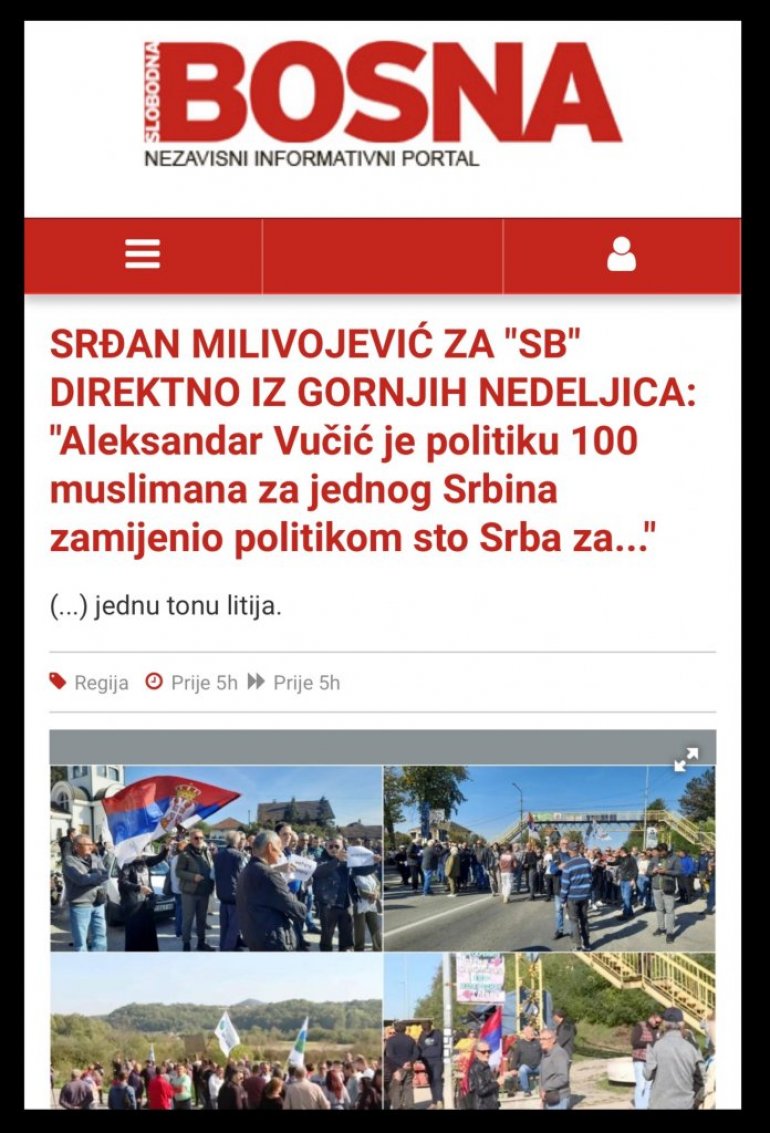 GLASNOGOVORNIK opozicije Srđan Milivojević postao je pravi miljenik islamističkog portala ''Slobodna Bosna'', za koji je dao intervju u kojem pljuje predsednika Vučića, Srbe i državu Srbiju!