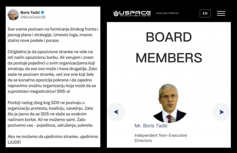 Podsetimo, Tadić je nedavno postao jedan od direktora kompanije USPACE koja se bavi svemirskom tehnologijom.