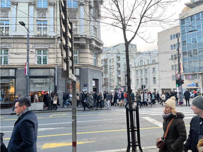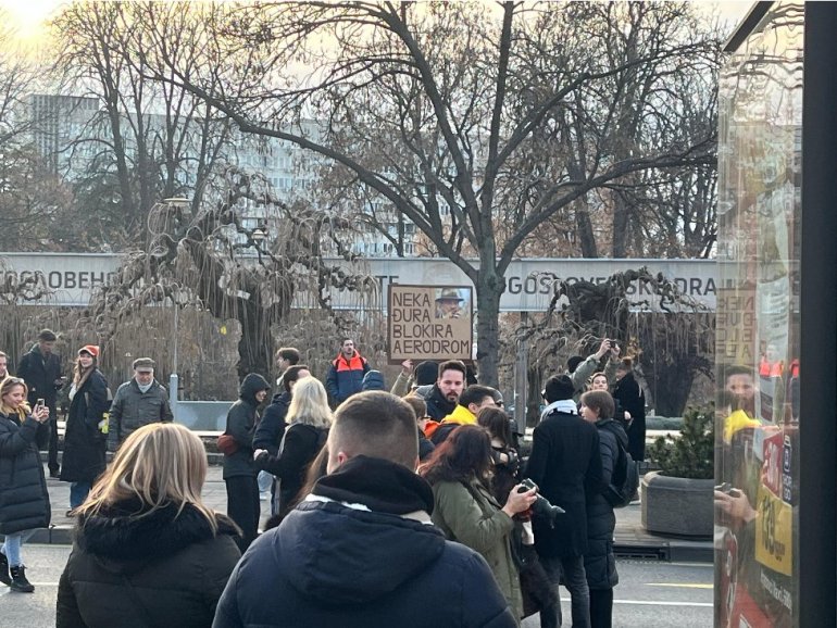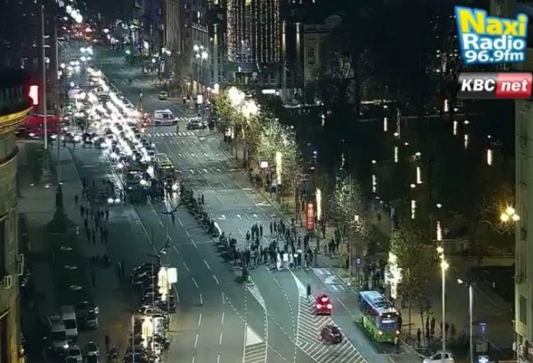 KOD Skupštine Srbije okupila se je grupica pristalica opozicije kako bi blokirala saobraćaj.
