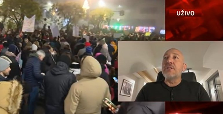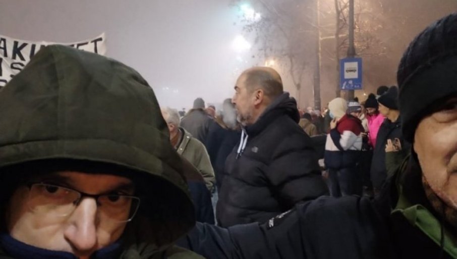 Na protestu se nalazi i urednik antisropskog medija Danas Dragoljub Draža Petrović, a koji je u vlsništvu tajkuna Dragana Šolaka.