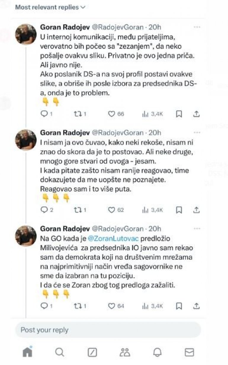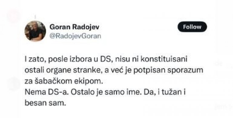 BIVŠI funkcioner DS Goran Radojev nastavio je sa raskrinkavanjem Srđana Milivojevića.