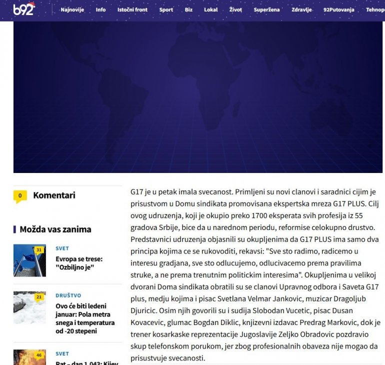 Kako su mediji tada pisali, cilj G17 bio je da "reformiše celokupno društvo".