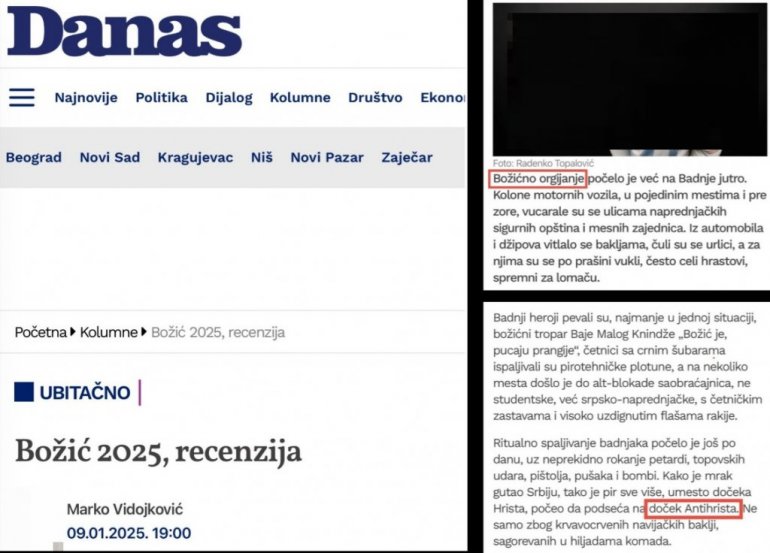 “ORGIJANJE I DOČEK ANTIHRISTA” Opozicioni hejter Vidojković u Šolakovom "Danasu" izvređao pravoslavne vernike na Božić
