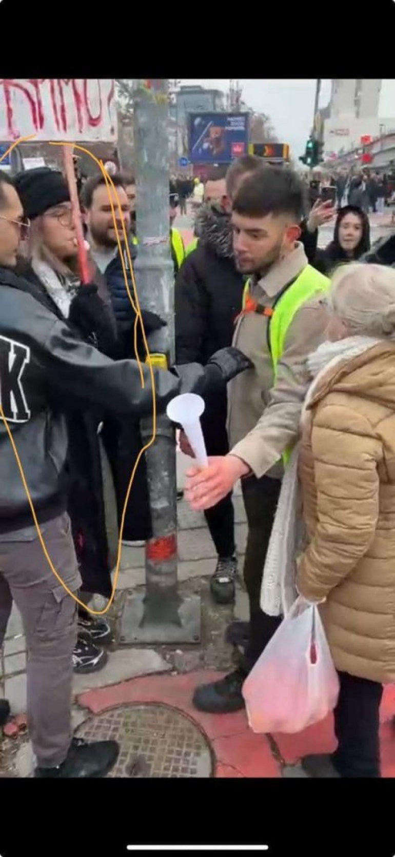 Nakon što su bespomoćnu ženu redari sklonili sa jednog na drugi kraj raskrsnice, Natalija Petrović (devojka sa naočarima koja nosi transparent) i koja je članica pokreta Kreni-Promeni je na najbezobzirniji način ženu gurnula, koja je nakon toga pala na beton , što možete da pogledate u videu koji sledi:
