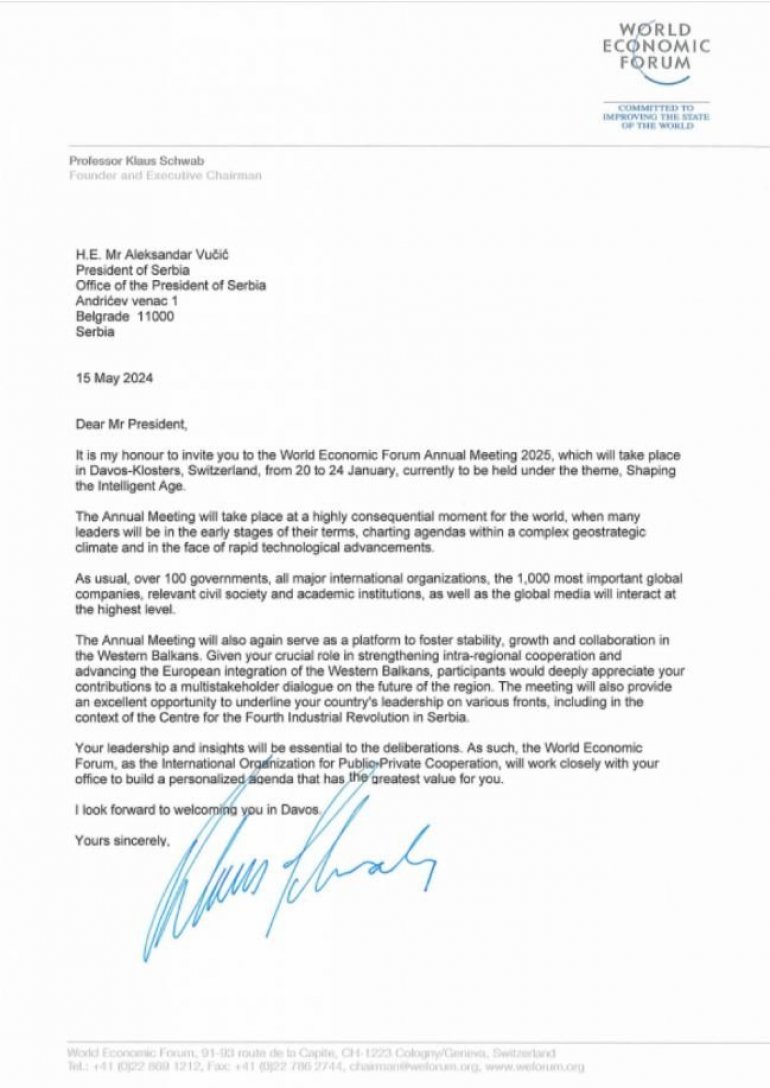Nego, jedan papir, i uprkos ovom naletu besa poput histeričnog deteta koje nije dobilo lizalicu, dokazao je da opet - masno laže. Naime, u pozivnici koju je Klaus Švab uputio predsedniku Vučiću, vidi se i da su sami organizatori ponudili da pripreme posebnu personalizovanu agendu.