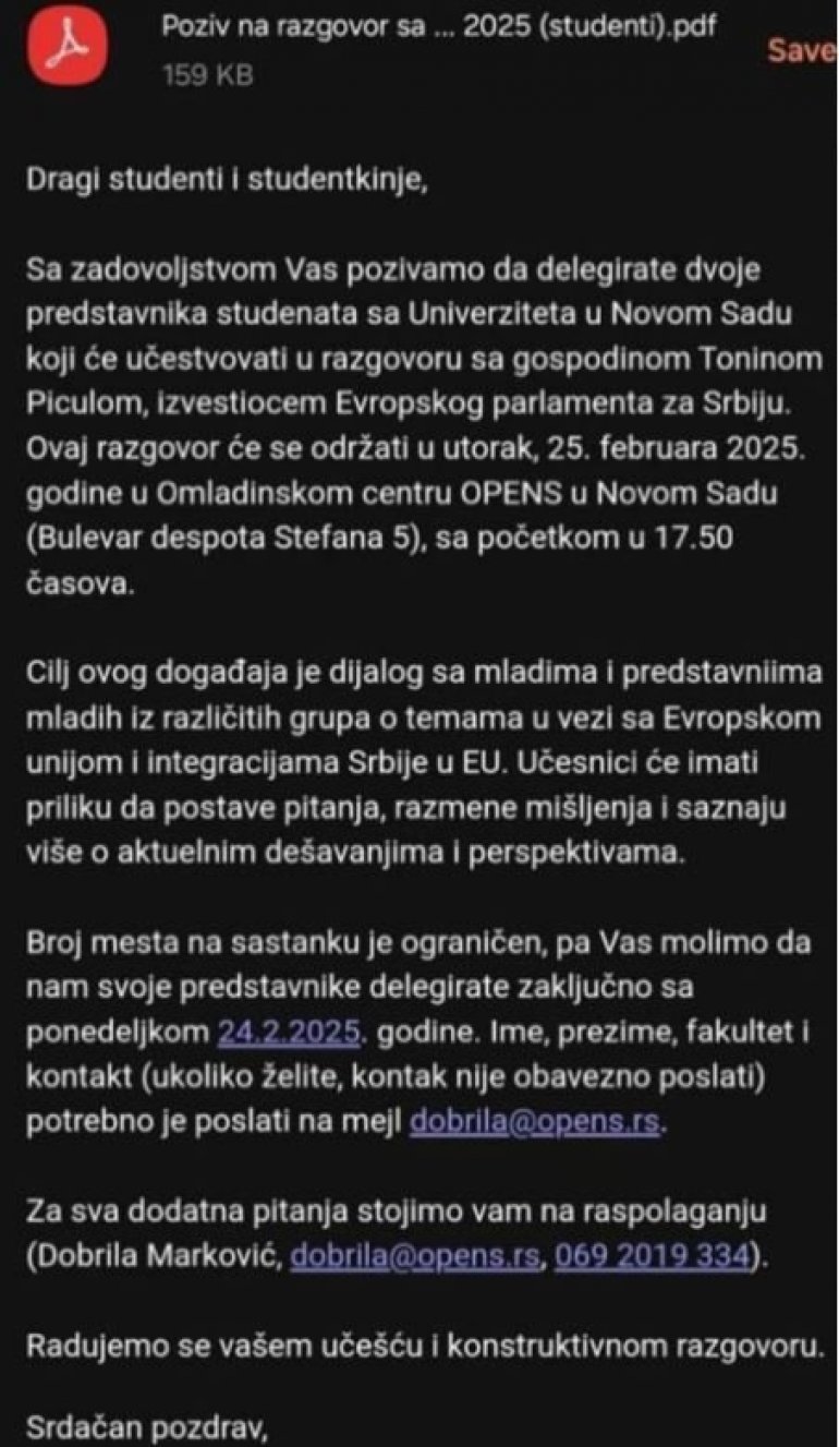 IZVESTILAC Evropskog parlamenta za Srbiju Tonino Picula demantovao je da je zvao studente na razgovor.