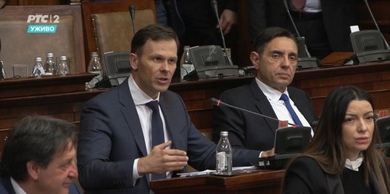 Brnabić je ukazala na bahatost i licemerje opozicije koja je tražila da opomene ministra zbog govora te podsetila na sve što su radili. Potom je dala reč ministru finansija Siniši Malom. On je rekao da je današnje ponašanje opozicije radost Aljbina Kurtija i njegovih medija.
