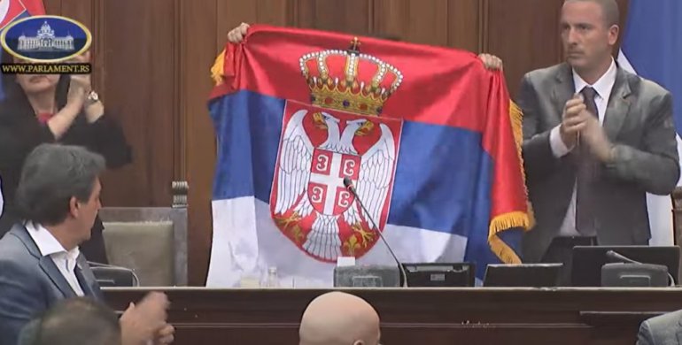 - Naš odgovor na Kurtijevu politiku biće ovo - poručila je predsednica parlamenta, koja je razvila srpsku zastavu.