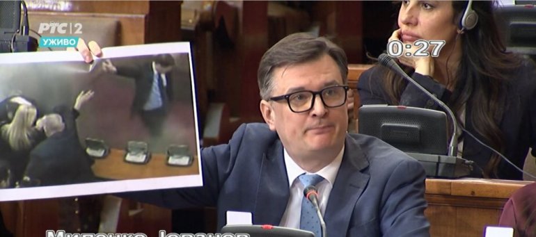 Milenko Jovanov je pokazao sliku Jovanovića kako prska poslanici biber sprej u lice.