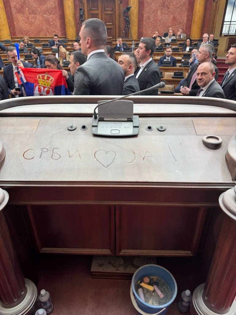 DOK opozicija pravi haos u Skupštini Srbije bacajući dimne bombe, suzavce a sve po scenariju Aljbina Kurtija vladajuća većina šalje jasnu poruku mira i ljubavi prema Srbiji i narodu.