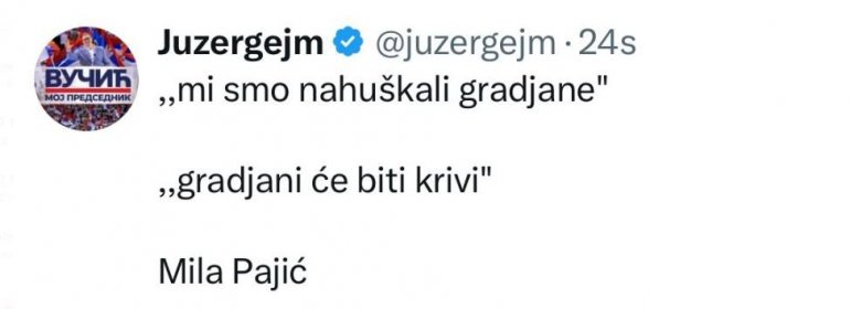 "Mi smo huškali građane", "građani će biti krivi" Mila Pajić - navodi se u ovoj objavi na mreži Iks koja pokazuje svu suštinu onih koji predvode blokade.
