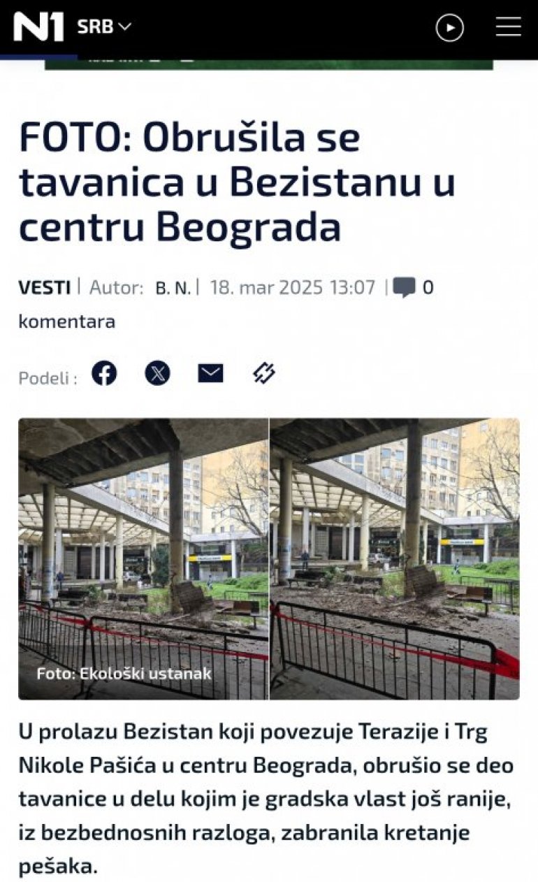 N1 OBJAVIO LAŽNU VEST I ŠIRIO PANIKU MEĐU GRAĐANIMA: Plafon u Bezistanu se nije obrušio, ovo je istina (VIDEO)