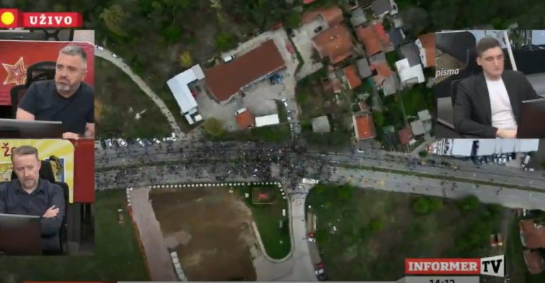 Na televiziji Informer prikazan je snimak dronom koliko se blokadera trenutno nalazi ispred zgrade i koliko njih sprovodi talačku krizu.