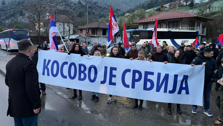 Velikim transparentom "Kosovo je Srbija" Srbi sa KiM poslali su snažnu poruku podrške predsedniku Srbije Aleksandru Vučiću.