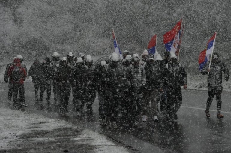 Srbi sa KiM juče su pešačili po jakom nevremenu i snežnoj mećavi.
