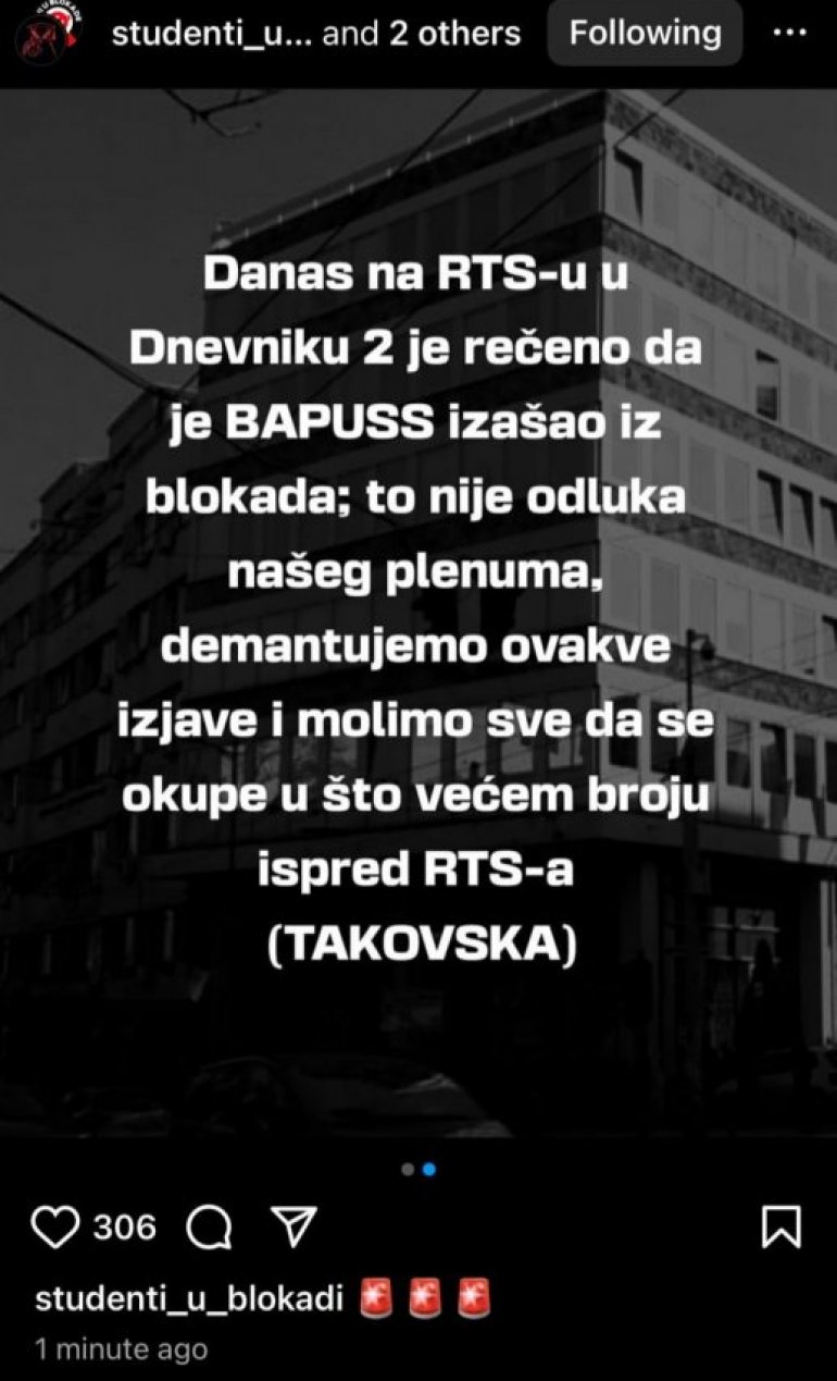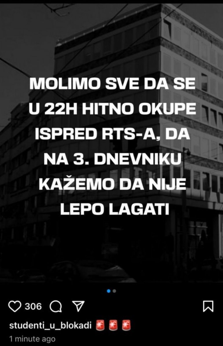 BANDA blokadera planira opšti upad na Radio televiziju Srbije u 22 sata. Oni su na Instagramu u grupi "Studenti u blokadi" pozvali na ovaj teroristički čin. Oni će večeras pokušati da izvrše državni udar!