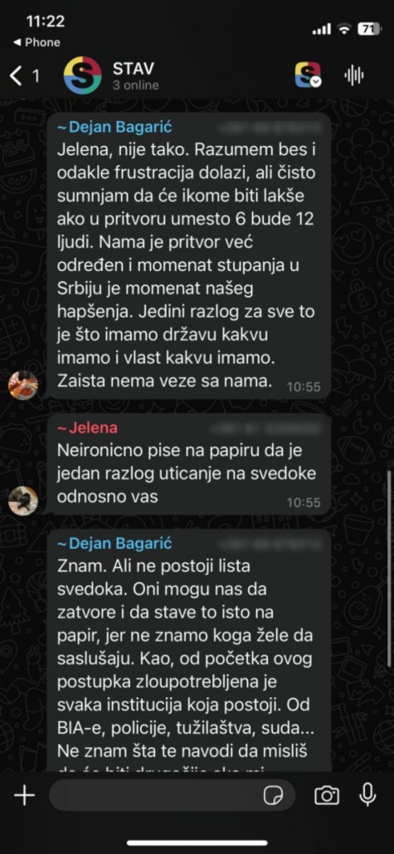 Jedan od onih koji komunicira u prepisci do koje smo došli je i Dejan Bagarić, a iz same prepiske vidi se da postoji ozbiljna podela među onim teroristima koji su pobegli iz zemlje i onih koji su ostali u Srbiji i privedeni.