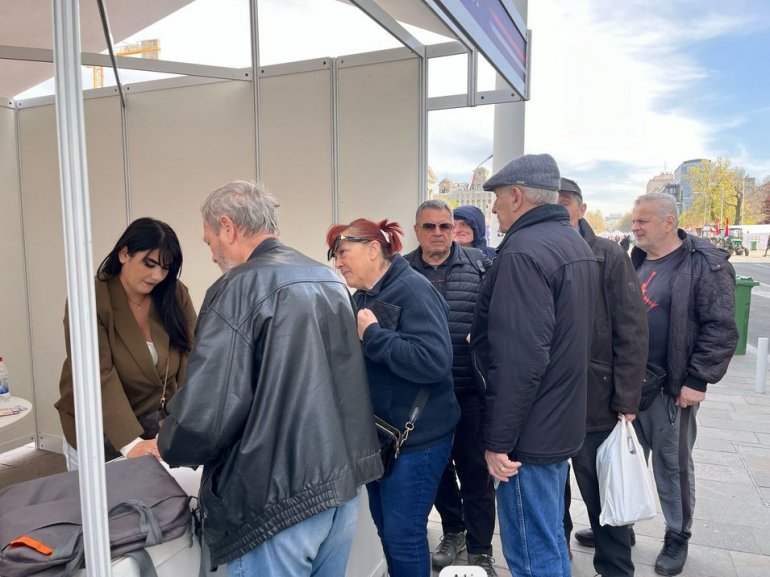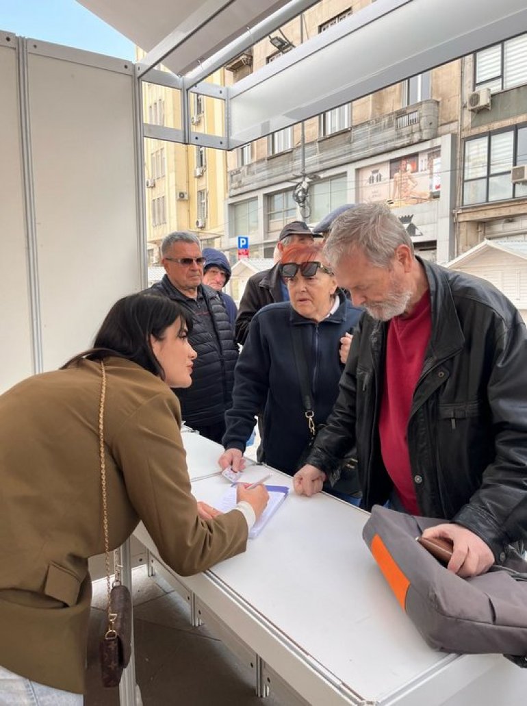 Građani u redu čekaju ispred štanda za pristupanje pokretu ne bi li na taj način podržali ideju čiji je jedan od inicijatora i predsednik Srbije Aleksandar Vučić.