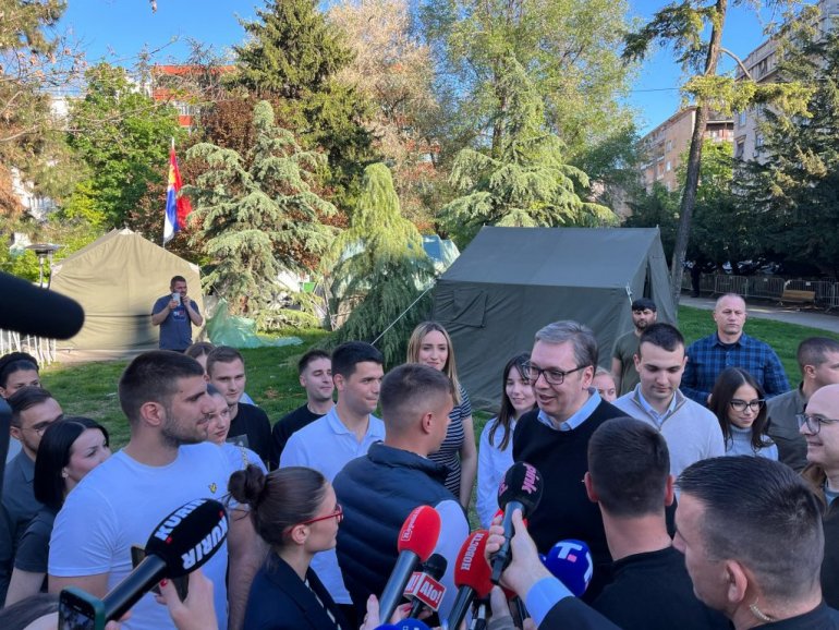 - Došao sam samo da vam kažem da vam se zaista divim, ja to retko govorim i to retko govorim bilo kome, stvarno vam se divim, ne samo zbog toga što ste izdržali u teškim vremeskim uslovima da budete napolju, da opstanete, divim vam se zbog hrabrosti da izdržite linč kojem ste bili izloženi-kazao je predsednik studentima.