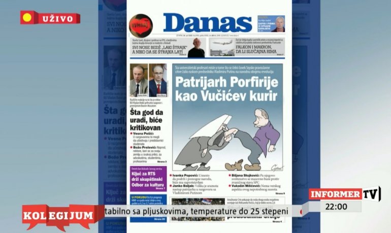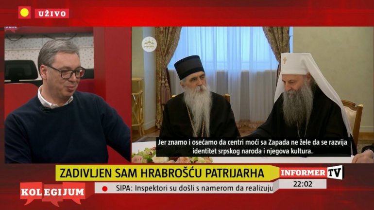 - Nikada te ljude o kojima govorite, ti ljudi su vodili računa o sebi, a lepo i lako je imati auru velikog rodoljuba i patriote i ne slagati se sa vlašću. Imali ste disidente u Titovo vreme, a živeli u kućama na Dedinju. Zadivljen sam hrabrošću patrijarha Porfirija i vladike bačkog Irineja i pokazali su da su mnogo veći ljudi i da odlično razumeju šta je država. U miru mogu da privodim mandat kraju znajući da SPC uspeti da se odupre onima koji bi da je sruše i razumeju koliko je važna veza srpske crkve i države.