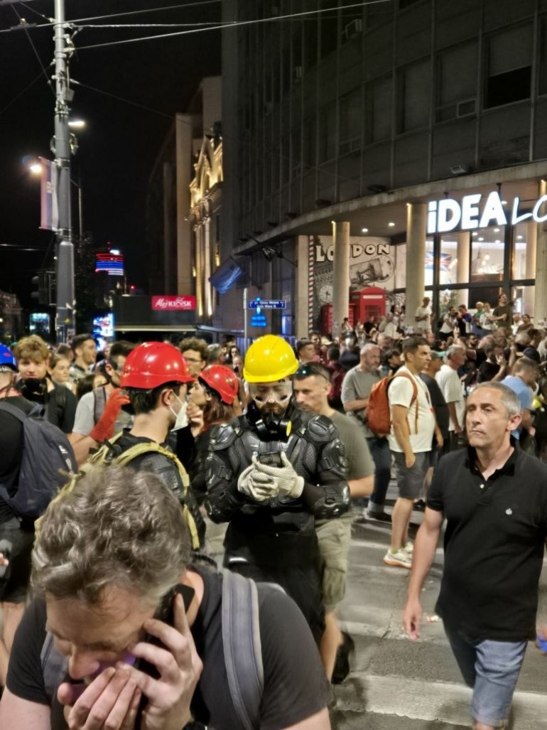 BLOKADERI koji su krenuli u napad na policiju nose gladijator odela.