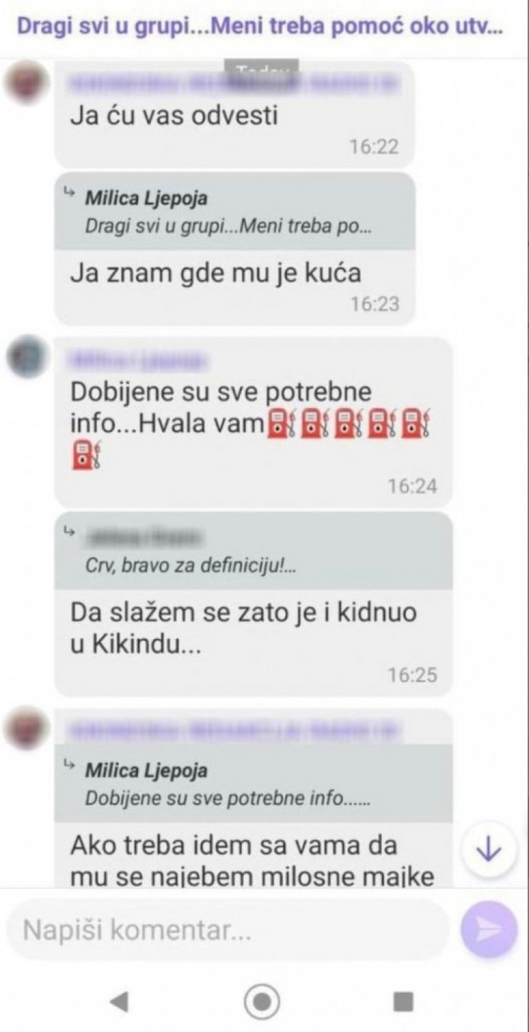 Naime, blokaderi preko viber grupe planiraju da utvrde gde Jovanov stanuje i da krenu ka njegovoj kući kako bi ga linčovali.