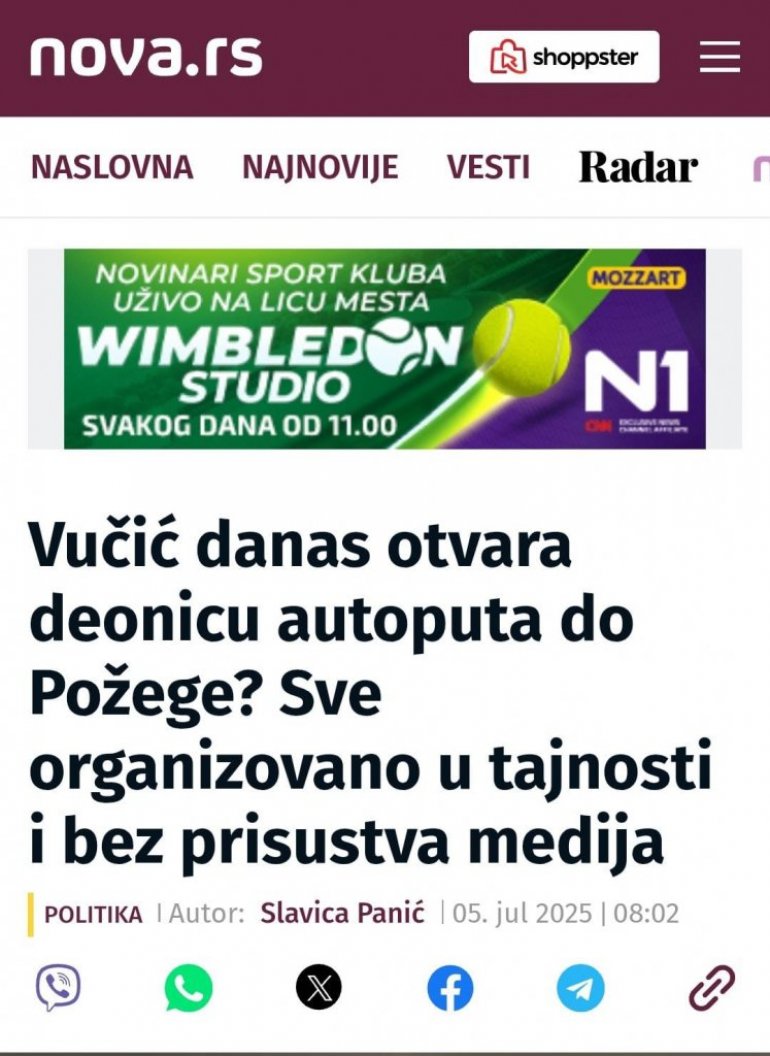 Oni naime, danas objavljuju tekst sa pompeznim naslovom u kojem tvrde kako je predsednikovo otvaranje ove deonice tajno organizovano, i kako na otvaranju nema medija!